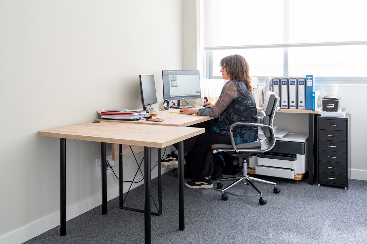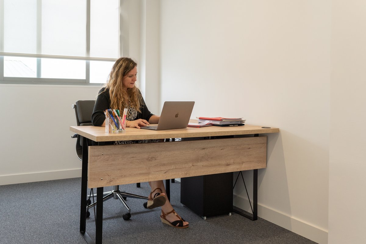 con mesa, silla y cajonera, para que puedas empezar a trabajar desde el primer